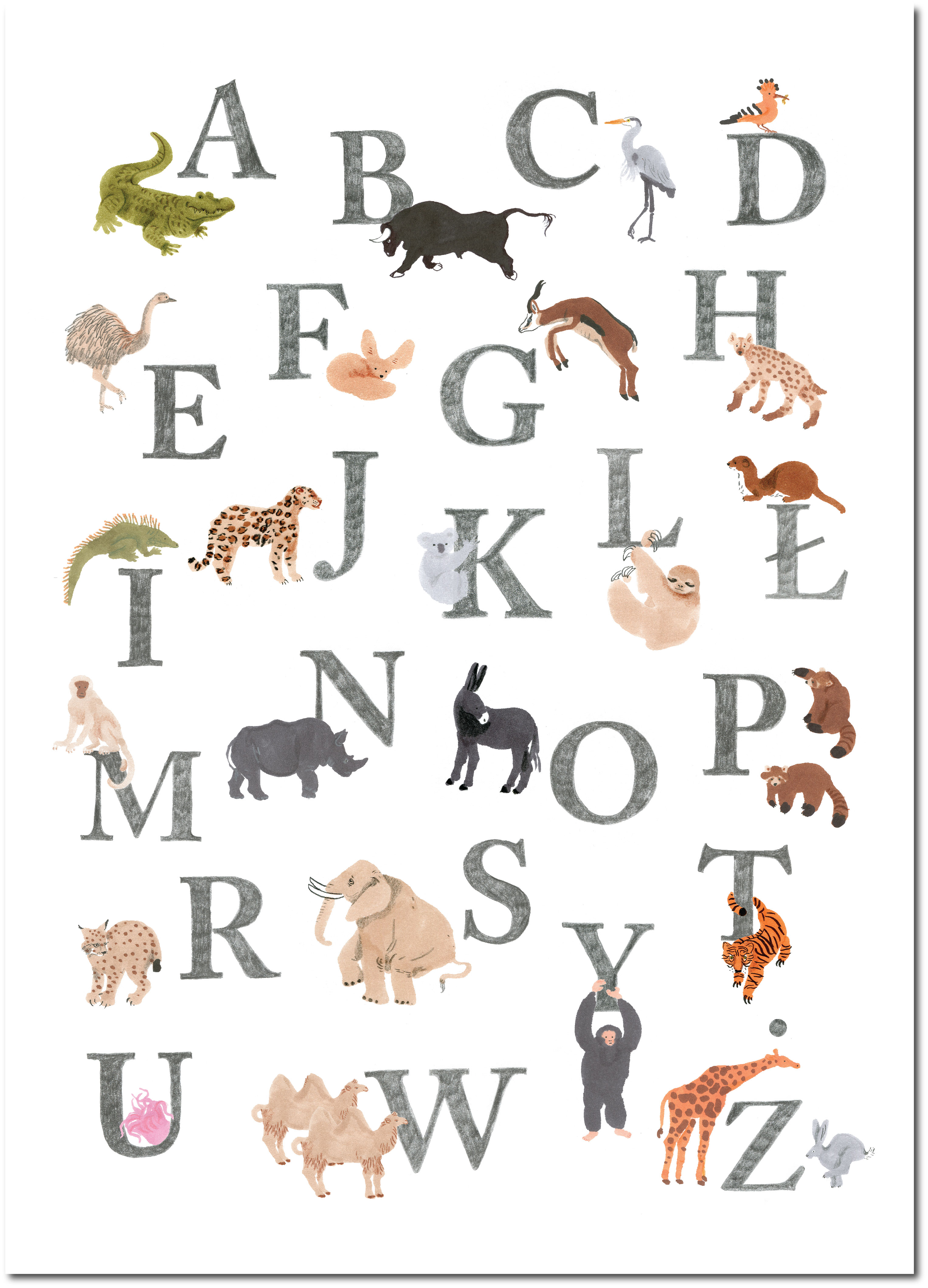 Kolejny plakat z polskim ALFABETEM do wystroju pokoików dziecięcych.