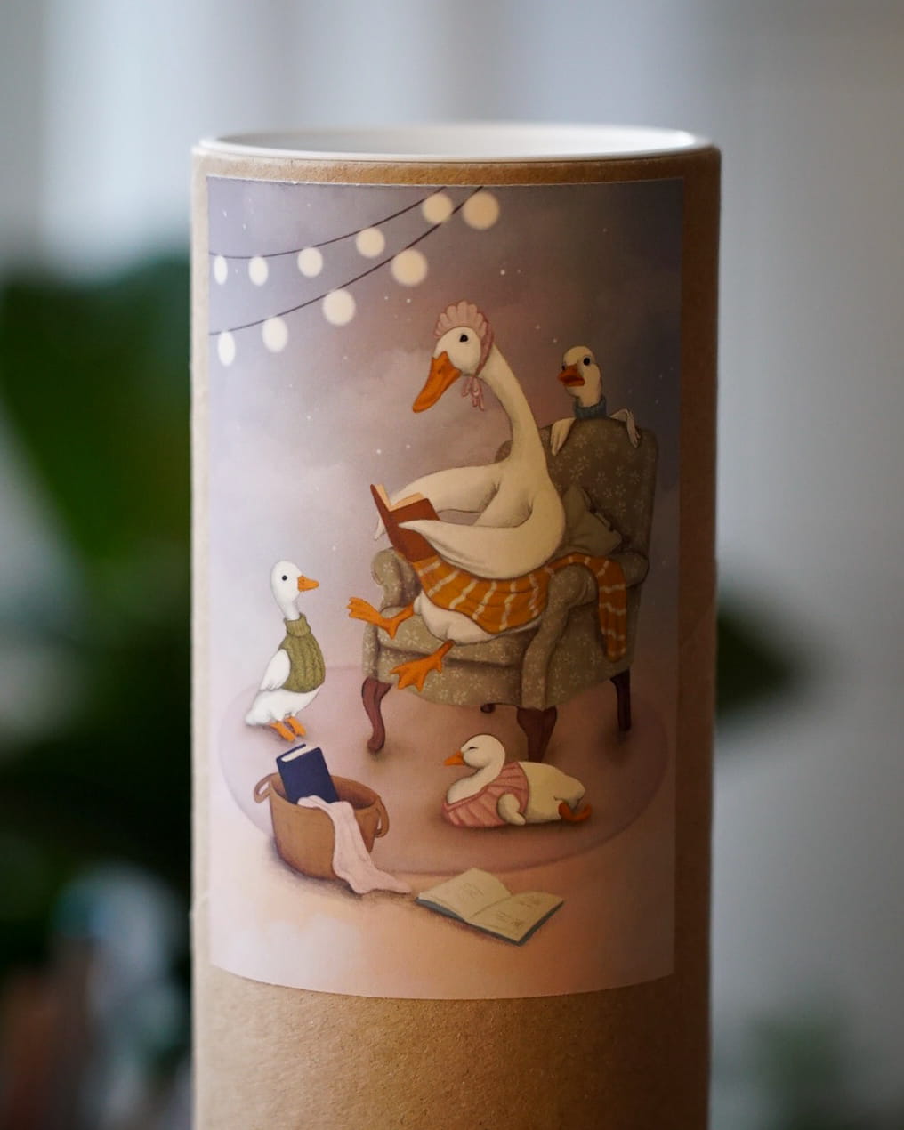 Na plakacie widzimy kochającą mamę gąskę, otoczoną swoimi małymi gąskami, zanurzoną w lekturze ukochanej książki. To nie tylko obraz rodzinnej miłości, ale także inspiracja do czytania i odkrywania nowych światów razem z najbliższymi.
