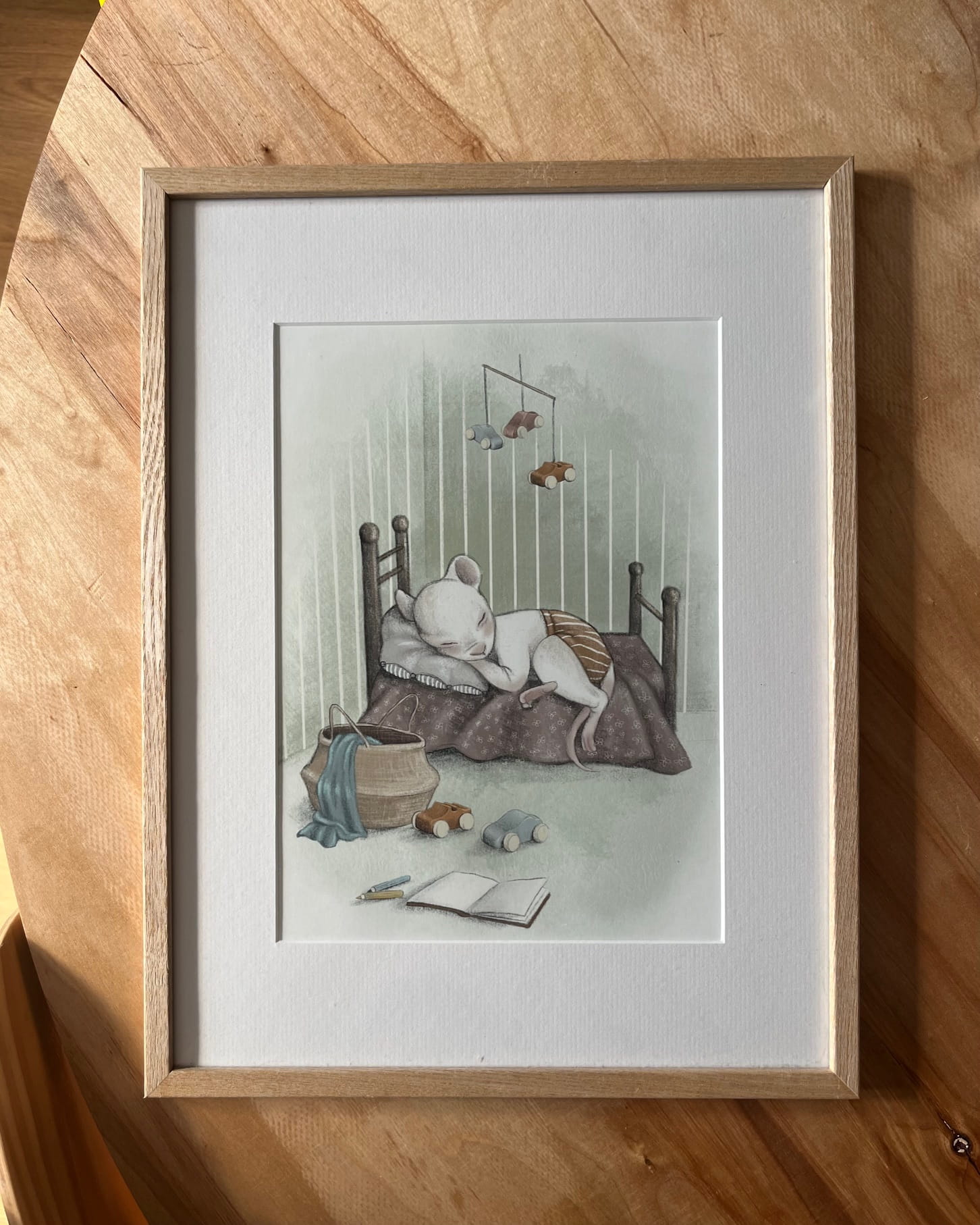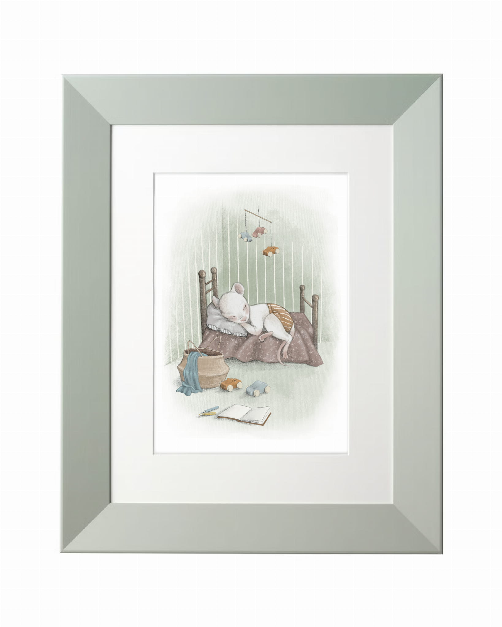 Przedstawiamy wyjątkowy plakat do pokoju dziecięcego z autorską ilustracją uroczej myszki, spokojnie śpiącej w swoim wymarzonym łóżeczku. W tle widać delikatne, pastelowe barwy, a obok łóżeczka – ulubione zabawki i książeczkę, pozostawione po dniu pełnym radości. Miękki kocyk czeka, by otulić maluszka, gdy zrobi się chłodniej.